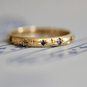 - Rainbow Celeste Major Star Engraved Gemstone Band