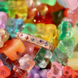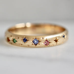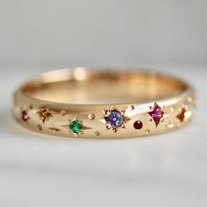 Rainbow Celeste Rising Star Engraved Gemstone Band