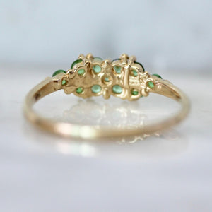 Get lucky with this fun cluster of bright green gemstones that consist of round brilliant cut green sapphires and green tsavorite garnets. Set in 14k yellow and low to the finger for ultimate comfort and style. Perfect as a treat yourself ring to accentuate any outfit or occasion.