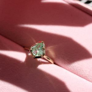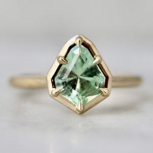 This ring is part of our ongoing Cut Like A Woman series, celebrating stones cut by independent women lapidaries. You can read more about the series in this blog post. This minty marvel was cut by the talented Jenna Sloane.
