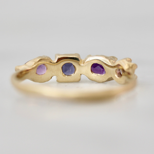 Tide Pool is the perfect ring that you just want to gaze into! A mix of cuts and purple hues of tanzanite, iolite, and amethyst delight the senses and will captivate anyone around. Made of 14k yellow gold and sits low and comfortably on the hand. Whether you are treating yourself or a loved one, this ring is sure to please.