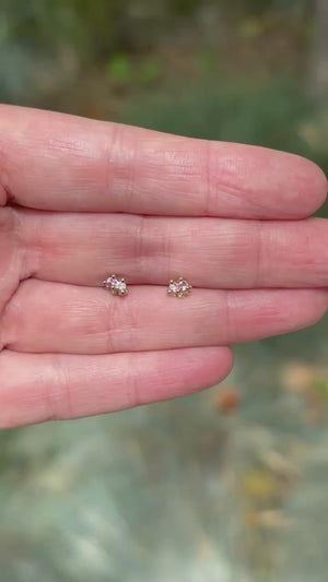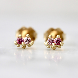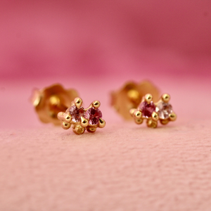 Give your ear stack some flavor! A yummy cluster of mid-pink and light pink sapphires total .20 carats are set in 14k yellow gold and are ready to adorn the lobes as a brilliant treat yourself gift, or for a loved one. Limited edition, there is only one pair!