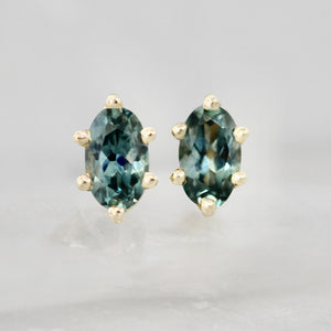 A stunning pair of electric teal oval cut Montana sapphires totaling .62 carats are encased in 14k yellow gold with eye catching claw prongs for added visual interest. Ready to adorn the lobes as a brilliant treat yourself gift, or for a loved one. Limited edition, there is only one pair!