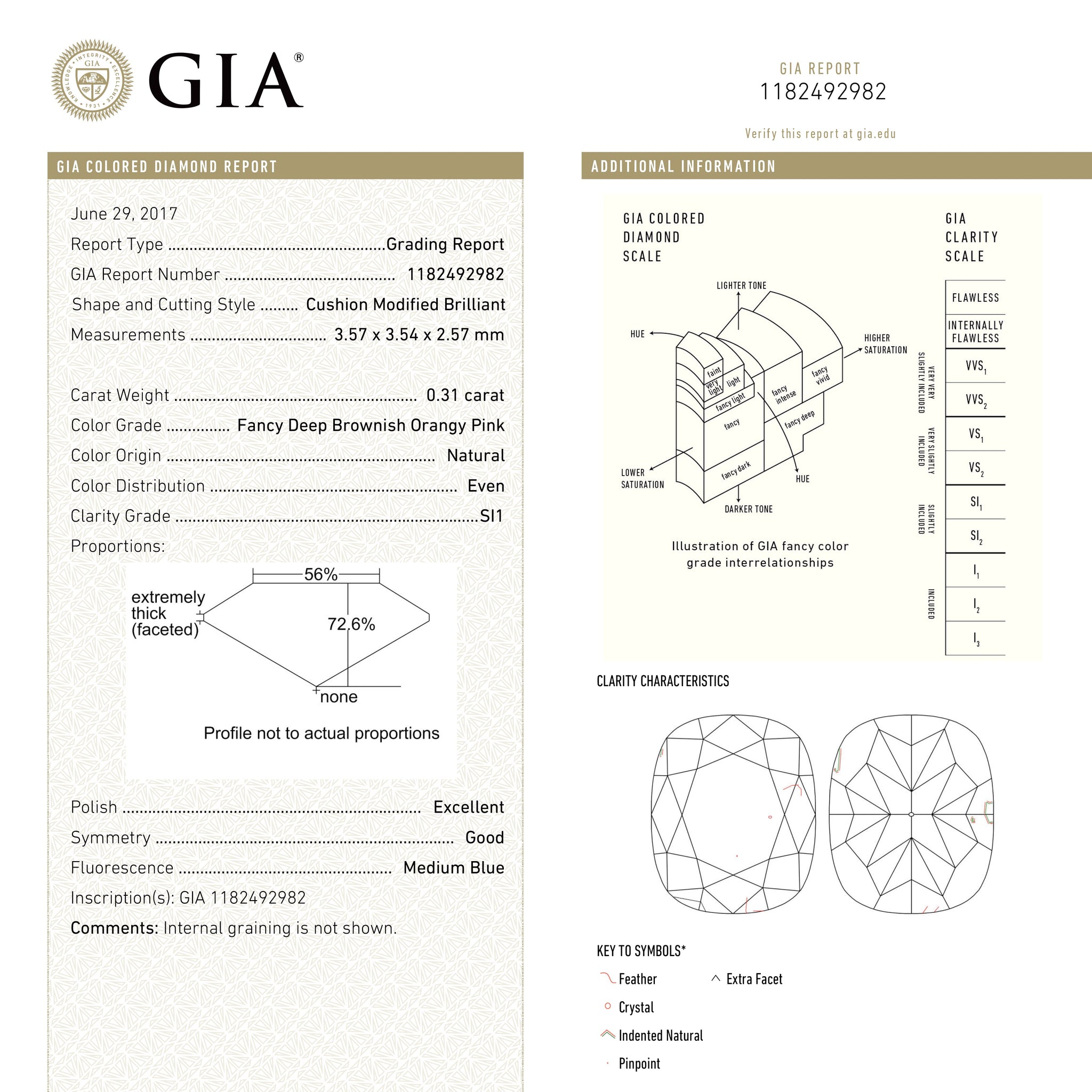 GIA Fancy Deep Brownish Orangy Pink Cushion Brilliant