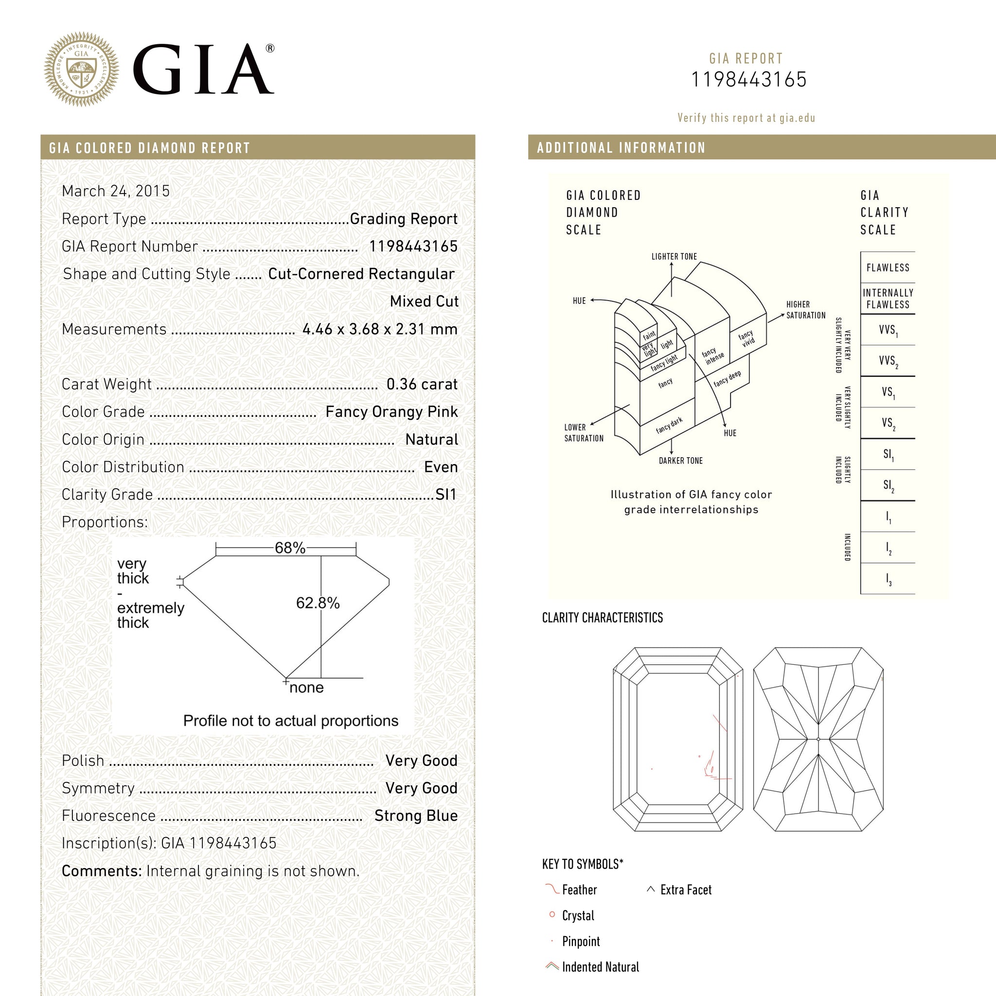 GIA Fancy Orangy Pink Cut Corner Rectangle Brilliant