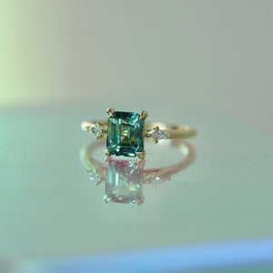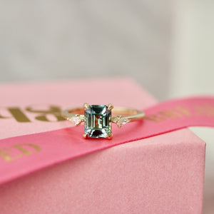 Starlet Light Teal Emerald Cut Sapphire Ring