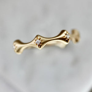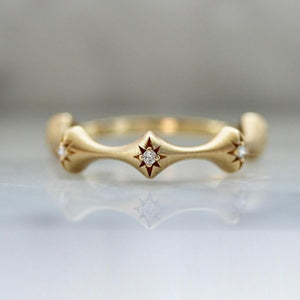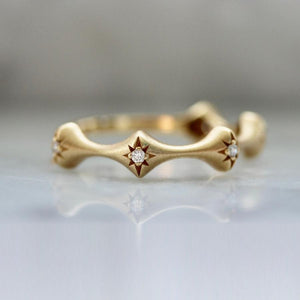 If you like them sleek and curvy, Dream Fairy is for you! This stunner features high quality white round brilliant cut diamonds set in star cut outs for the perfect extra detail! Set in your choice of gold, this band is designed to be worn alone or as a perfect match to the Pixie Dust Diamond Band.