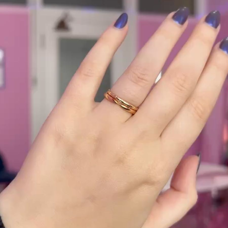 This pinched band is a sexy spin on a plain gold band. Set into your choice of golds and is perfect to pair with your favorite rings or as a simple statement.