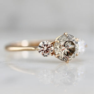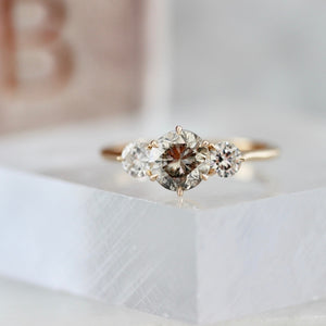 Sonnet Three Stone Champagne Salt & Pepper Diamond Ring