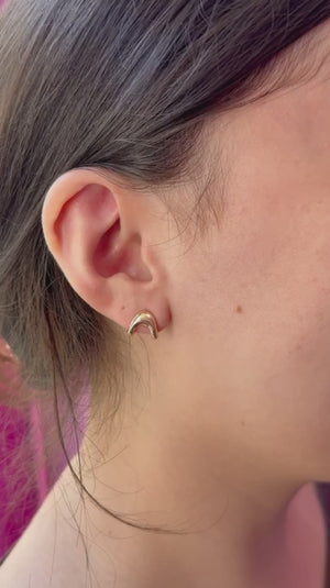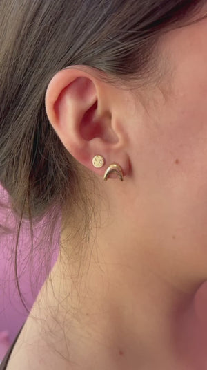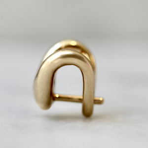These huggies embody the iconic Zaha curve—an organic, free‑form arch that gently hugs the earlobe. Crafted in your choice of solid 14k gold with a push back post that gives a satisfying click!